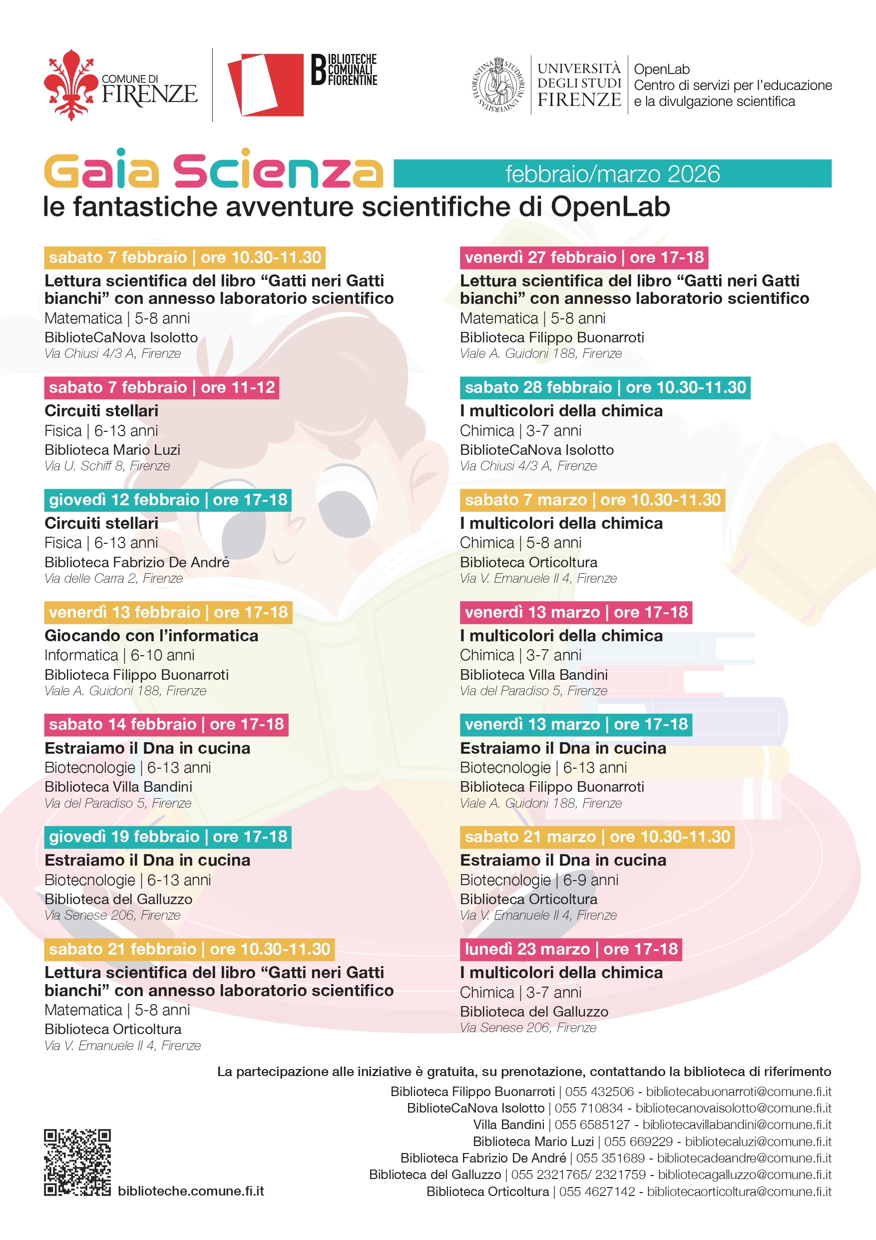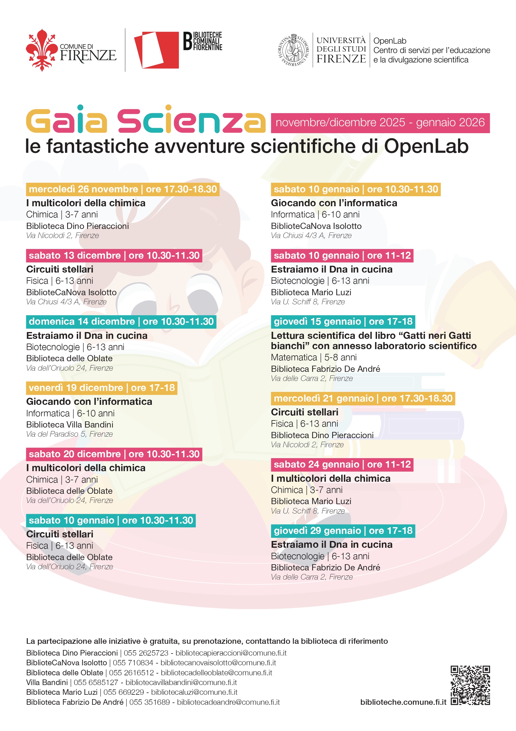 Dal 26 novembre 2025 al 23 marzo 2026 tanti appuntamenti con la divulgazione scientifica gratuita di OpenLab presso le biblioteche di Firenze.